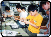 夜7時前、研究所を後にして引率者を先頭に宿舎のホテルまで移動し、チェックインを済ませました。部屋で簡単な休憩をとった後は、参加者&引率者のミーティングを行いました。参加者自己紹介やお国自慢、学校自慢などで和み、その日の体験感想の発表をみんなで聞きあいました。サイエンスキャンプ事務局からは、翌日のスケジュールの説明がありました。このミーティングの後は自由時間となります。初日の旅疲れと緊張のため疲れがたまっているので、翌日の活動に備えて早めに就寝しました。 |
