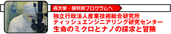 ヒトの組織から得られた細胞を培養し、従来の医療では不可能であった臓器・組織を再生させる画期的な治療法、すなわち再生医療が、難治病の根本的な治療法として成立しつつあります。この種の医療を大きな規模で実現するには、多くの技術の連携と新たな技術の開発が必要です。まずは医学ともの作り工学の融合があり、ついで完全自動の培養システムや、細胞の検査方法、体内に移植した後の検査技術などの開発が進むでしょう。 そしてティッシュエンジニアリングの最大の課題は、分化誘導など細胞の制御技術の確立です。幹細胞を神経など特定の組織になるよう正確に分化誘導するためには、極めて高度かつ総合的な技術が必要です。研究開発を通して、ゲノムやプロテオーム、画像解析などの諸技術を超えて、情報工学、コンピューター技術、ナノテクノロジーなどと融合した新しい技術が現れると考えられます。