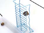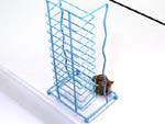 オカヤドカリは熱帯の生物です。熱帯ではよくスコール(雨)が降ります。オカヤドカリはスコールを嫌い、高い場所を好む性質があります。オカヤドカリは自然では石や枯れ木の上にのぼりますが、こうした複雑な場所でものぼることができるかどうかを確かめる実験です。その結果、こうした複雑なものでも、下から上にのぼって上がっていくことができる能力があることがわかりました。
