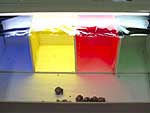 オカヤドカリは色彩を感じることができます。それを調べるために赤、黄、青、緑色のセロファンでつくった4個の室を設けた箱をおいておき、その前にオカヤドカリを50個体はなします。どのように移動するでしょうか?