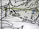 黄道12星座のOHPフィルムに、天王星(みずがめ座)、海王星(やぎ座)、冥王星(さそり座)をワイヤーでさしこんで固定します。 - 油性マジックでフィルムに色を入れます。黄道は黄色の点線、赤道は赤色で0°、太陽(春分点・夏至点・秋分点・冬至点)は赤色にします。