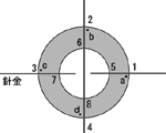 - フィルムケースのふたに、千枚通しで、針金を強く押したら入る程度の穴をあけます。(図1)このとき、「穴1・5・7・3」と「穴2・6・8・4」が直角に交わるようにします。